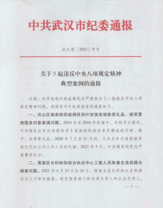 市紀委關于5起違反中央八項規定精神典型案例的通報