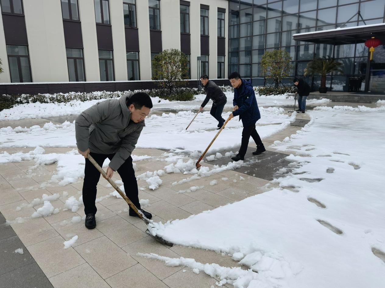 會后,領導班子成員秉承干在實處、走在前列的精神,帶領各部門工作人員在科學島園區開展義務勞動,清除路面積雪,確保道路交通順暢、員工出行安全。道路寒風凜冽,路面積雪厚重,尤其是隨著氣溫驟降,增加了掃雪除冰的難度。但在領導們的帶領下,干部職工們個個干勁十足,掃帚、鐵鍬、鐵鏟齊上陣,揮鍬、破冰、鏟雪、清地……經過連續數小時的奮戰,道路、綠化帶等園區內的堅冰積雪被逐漸清掃干凈,確保了道路的暢通和安全,切實保障科學島展廳工作區進入接待狀態。